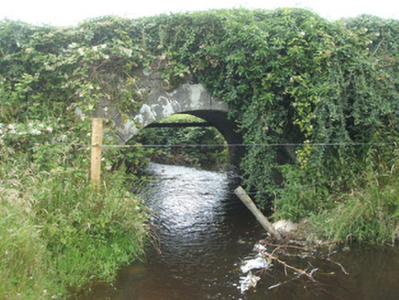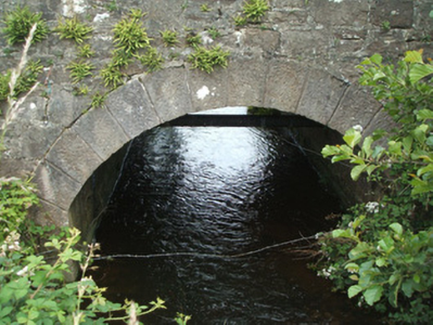 Although the parapet to the east side has been rebuilt in recent years, this simple single-arched road bridge retains much of its early form and character. It probably dates to c. 1800, a period when a great many small-scale bridges of this type were constructed throughout Ireland by the Grand Juries (the forerunners of the County Councils). It is well-built with good quality dressed limestone masonry to the voussoirs, and represents a modest example of the skill of local craftsmen at the time of construction. This modest bridge is typical of its type and date and is an addition to the built heritage of the local area, adding interesting to the rural landscape to the northeast corner of County Longford.
