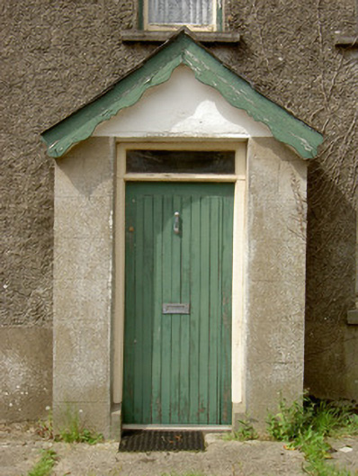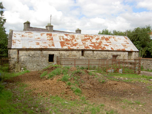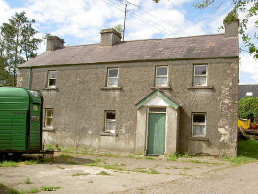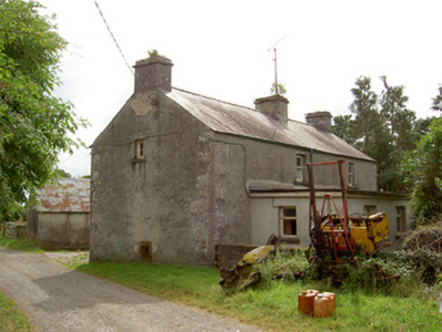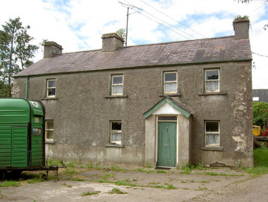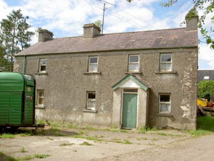 Detached four-bay two-storey house, built c. 1800, with projecting gabled porch to the front elevation (south) and flat-roofed single-storey extension to rear (north). Pitched natural slate roof with three cut limestone chimneystacks and cast-iron rainwater goods. Pebbledashed walls over smooth rendered plinth and with dressed limestone quoins to the corners at the east end. Square-headed window openings with one-over-one pane timber sliding sash windows and cut limestone sills. Square-headed door opening to front face of porch with timber battened door and overlight. Rendered wall to west of site with carved limestone heads and wrought-iron pedestrian gate. Outbuilding to south of site having roughly dressed sandstone walls and pitched corrugated-metal roofs. Set within a small group of houses/former clachan, close to the border with County Leitrim and the Rinn River. Rendered boundary walls and wrought-iron gates to site. Carved stone heads, c. 1950, to top of boundary wall to south of house.