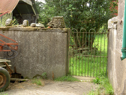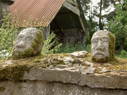 This vernacular house retains much of its earlier character and fabric. The dressed limestone quoins help to elevate this building above many of its contemporaries of a similar date and type in County Longford. The spacing of the window openings suggest that this building was extended to the west at some stage. Modest in scale and form, this farmhouse exhibits the simple and functional form of traditional building in Ireland. The associated outbuildings make this an interesting group of traditional farm buildings. The single-storey outbuilding to the south is well-built and contributes to the setting. The house is the best surviving structure in a cluster of buildings and houses that originally formed a clachan or nucleated settlement. The carved stone heads were carved by two local old men about 50 years ago in their own likenesses (local information).