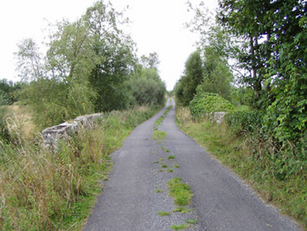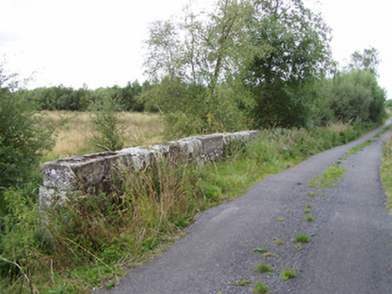 The road bridge is solidly constructed with rubble limestone masonry walls. The voussoirs are finely carved and are clearly the work of skilled craftsmen. The bridge serves as a reminder of the quality of the engineering and local craftsmen's skills in the mid-nineteenth century. Although the bridge has some modern repairs, it survives in reasonable condition and is a worthy addition to the built heritage of County Longford. It straddles the border with County Leitrim to the west. This bridge looks c. 1800 but the road is not indicated on an 1838 map of the area.