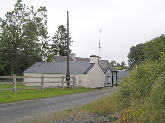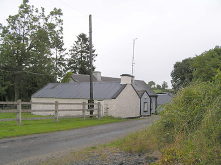 Detached five-bay single-storey house, built c. 1800, having projecting gable-fronted porch with pitched artificial slate roof to the centre of the southeast elevation. Pitched artificial slate roof with two rendered chimneystacks. Painted roughcast rendered walls over smooth rendered plinth, render block quoins to corners. Square-headed window openings with two-over-two pane timber sliding sash windows with painted stone sills. Square-headed door opening to northeast side of porch having half-glazed timber door. Multiple-bay single-storey outbuilding to southwest, with pitched corrugated-metal roof, painted roughcast rendered walls and square-headed openings with timber and sheet metal fittings. Single-storey outbuilding attached to northeast gable with pitched corrugated-metal roof and painted roughcast rendered walls. Single-storey outbuildings to northeast with pitched and barrel-shaped corrugated-metal roofs and painted roughcast rendered walls. Single-bay single-storey outbuilding to yard to rear with pitched corrugated-metal roof, roughcast rendered walls, and square-headed openings. Set slightly back from roadside with yard with outbuildings to rear and outbuildings on either side. Located to the north of Granard.