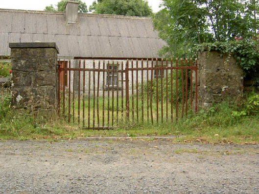 Although currently out of use, this vernacular house retains its original character and much of its salient fabric, and represents a good example of its type. Modest in scale and form, this house exhibits the simple and functional form of traditional vernacular building in Ireland. The corrugated-asbestos roof suggests that this building was formerly thatched. The position of the central chimneystack, offset from the entrance porch, suggests that this building has/had the lobby-entry plan that is characteristic of the vernacular architecture of the midlands of Ireland. It has been extended along its length, which is almost of typical feature of buildings of this type. The simple gate piers and the wrought-iron flat bar gates to the entrance add to the setting and complete this composition. This building is the best surviving example in a cluster of former vernacular houses, possibly a clachan, at Prucklish, the other buildings having been altered or in an advanced state of disrepair.