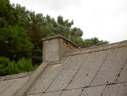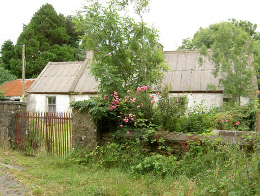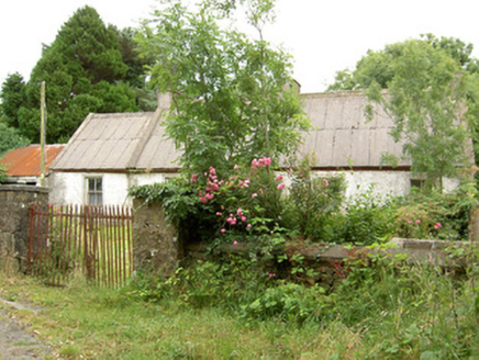 Detached four-bay single-storey vernacular house, built c. 1800, with projecting single-bay flat-roofed entrance porch to the main elevation (north) and with single-bay extension and abutting outbuilding attached to the east. Now out of use. Pitched corrugated-asbestos roof with three rendered redbrick chimneystacks, one to either gable end and one offset to the centre, and with cast-iron rainwater goods. Pebbledashed walls over smooth rendered plinth, and having render quoins to the corners. Square-headed window openings with two-over-two pane timber sliding sash windows having tooled limestone sills and rendered reveals. Square-headed doorway to front face of porch having glazed timber door with glazed surrounds. Outbuilding with pitched corrugated-metal roof and roughcast rendered walls to northeast. Gateway to the north of site comprising a pair of rubble stone gate piers (on square-plan) having double-leaf wrought-iron flat bar gates. Set back from road to the northeast of Newtown-Forbes.