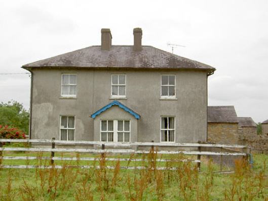 This simple two-storey house retains its early form and character. Its symmetrical form creates a pleasing composition. It retains much of its early fabric including timber sash windows and a natural slate roof. Good quality timberwork is evident to the canted bay window to the southwest elevation, and adds an element of artistic appeal to this side elevation. This house is an example of the enduring popularity in Ireland of the three-bay two-storey form with symmetrical fenestration and hipped roof. It probably dates to the mid-to-late nineteenth century but it may incorporate the fabric of an earlier building to site (Ordnance Survey first edition six-inch map 1838). The simple porch is probably a later addition, perhaps c. 1900, but adds to the character of the building. The simple complex of outbuildings to the rear and the wrought-iron flat bar gates complete the setting and add to this unassuming composition. It is an integral element of the built heritage of the local area, adding appealing to its rural location.