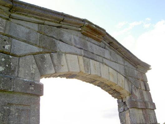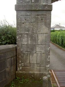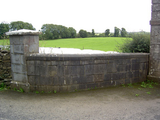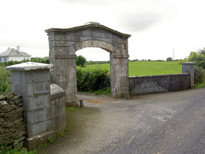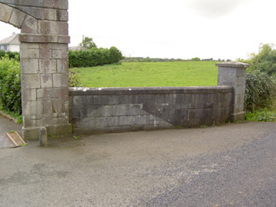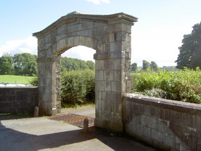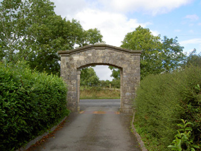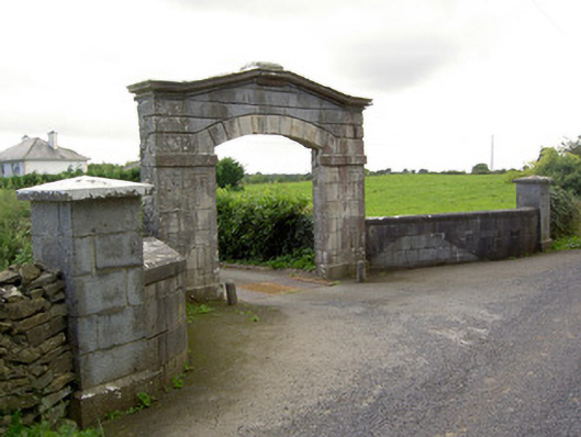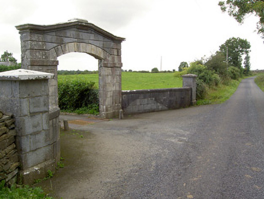 An impressive and imposing classical entranceway, of finely executed limestone and sandstone construction, that is reminiscent of a triumphal arch. It is well-detailed throughout, exhibiting a distinctive incised Greek key pattern and with finely carved coping/cornice over. It is built in a vaguely Greek Revival style, a style that was popular during the late-eighteenth and (particularly) the early-nineteenth century. This fine archway was apparently originally located at the entrance to the outbuilding complex (13401002) to the rear of the now demolished Rockfield House/Dalystown House, and was moved to its present site during the late-twentieth century. However, this gateway is of a higher architectural quality than the surviving outbuildings, suggesting that it may have originally come from another site/house. It is a feature of some artistic and architectural merit, adding interest to its rural location to the north of Granard. The curved sections of boundary wall and the piers complete the setting and add to this distinctive composition.