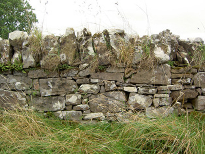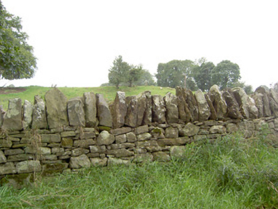 Section of dry stone field/boundary wall, erected c. 1800. Constructed of roughly coursed random rubble stone having vertical limestone coping over. Located adjacent to road, to the north of Granard.