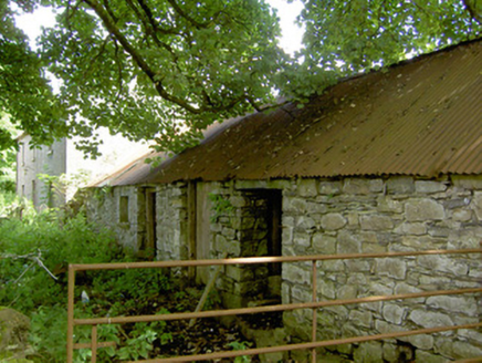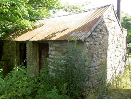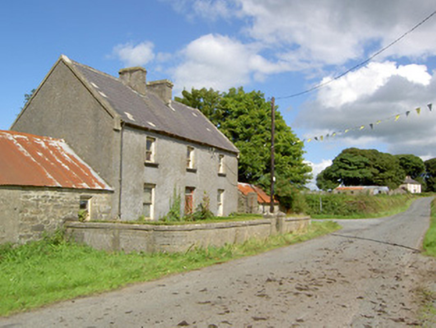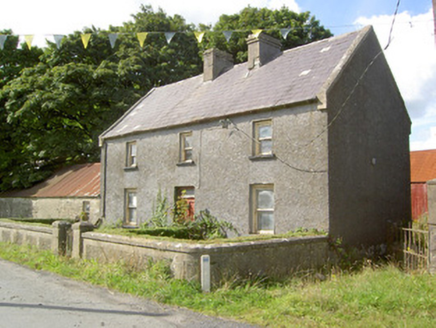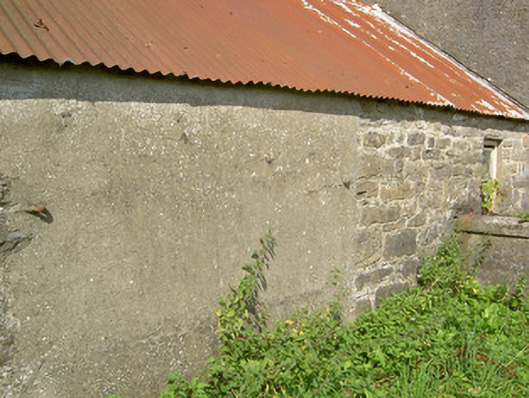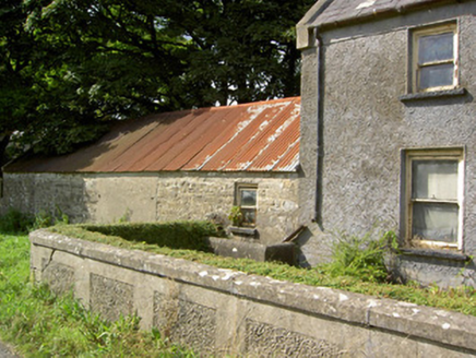 An attractive and well-proportioned mid-to-late nineteenth-century house retaining its original form and character. This modest building retains much of its early fabric, including timber sliding sash windows and a timber panelled door of late-nineteenth appearance. The single-storey outbuildings to either side, possibly formerly in use as dwellings, add to the setting of this modest dwelling. One of these outbuildings has iron rings to the front elevation, which may have been used to tether animals during fair days as the former village fair green is located adjacent to this building to the southeast. T he wrought-iron gates to site, particularly the decorative pedestrian gate to the entrance, add an element of artistic appeal. This building is of a type that was formerly very common in the Irish rural countryside but is now becoming increasingly rare due to modern alterations etc. This building, although now out of use, is an integral element of the built heritage of north County Longford, and adds to the historic feel of the Bunlahy area.