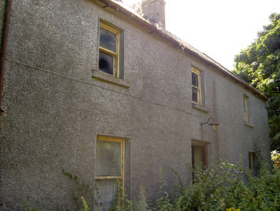 Detached three-bay two-storey house, built c. 1860, now disused. Pitched natural slate roof with a central pair of rendered, chimneystacks, cast-iron rainwater goods and raised verges to either gable end. Roughcast rendered walls with smooth render section to eaves. Square-headed window openings with rendered sills and one-over-one timber sliding sash windows. Central square-headed door opening with timber panelled door and overlight. Attached single-storey outbuilding to west gable end, having corrugated-metal roof and random rubble limestone walls. Single-storey outbuilding to east having corrugated-metal roof and random rubble limestone walls. Wrought-iron rings to front elevation. Wrought-iron gate accessing rear of site (east of house). Set slightly back from road to the east end of Bunlahy, adjacent to road junction. Rendered boundary wall to road frontage (south) enclosing garden. Rendered gate piers (on square-plan) and wrought-iron pedestrian gate to entrance.