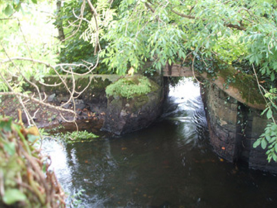 This simple but well-built industrial relic was originally associated with a former saw mill that lay to the east (now demolished). It was originally constructed to allow the control of water into the millrace to the north, thus providing a suitable head of water to power a water wheel(s) at the mill. The overflow to the south was used to carry water away from the sluice in times of flood. Although it has long ceased to function, the remains are technically important and are part of the industrial heritage of the local area. Sites such as this are particularly vulnerable to removal/destruction as their utilitarian nature makes them subject to extensive renovation or dismantling. There was formerly a mill pond to the east, now dry, which also appears to have functioned as a decorative landscape feature associated with Kilshruley House, now demolished.