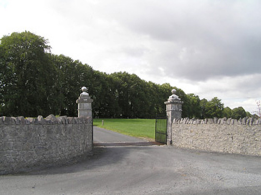 Entrance gates serving Brianstown House (13401105), erected c. 1731, comprising a pair of ashlar limestone gate piers (on square-plan) having projecting plinths, moulded string courses and moulded stepped capstone with ball finials over. Wrought-iron double leaf flat bar gates. Gateway flanked to either side (east and west) by sections of rubble stone boundary wall (on curved/quadrant-plan) having rubble stone coping over. Rubble limestone boundary estate walls to the north and the south. Located to the southeast of Brianstown House, at the start of long approach avenue to house, and to the northwest of Longford Town.