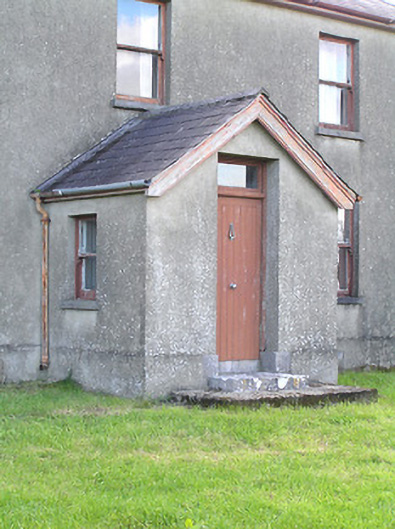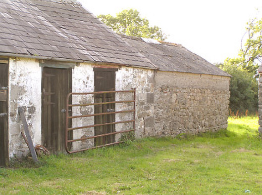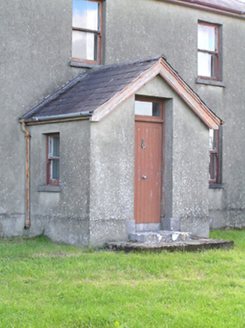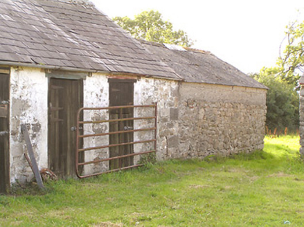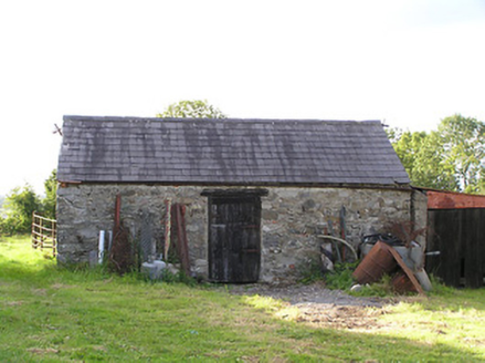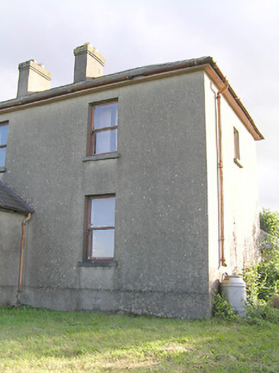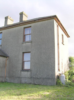 This modest but well-proportioned two-storey house retains its early character and form. The appearance of this house is typical in many ways of the archetypal medium-sized house in the Irish countryside. The hipped natural slate roof and paired chimneystacks over a symmetrical façade, defined by vertically oriented windows and a central entrance further emphasised by an entrance porch, is a recurring motif through several centuries. It retains much of its fabric, notably timber sash windows. The rubble stone outbuildings to the rear, and the wrought-iron gates to site, add considerably to the setting of this unassuming composition. The largest of these outbuildings predates the present dwelling (Ordnance Survey first edition six-inch map 1838), and its scale and the presence of a chimneystack suggests that it may have been formerly in use as a dwelling.