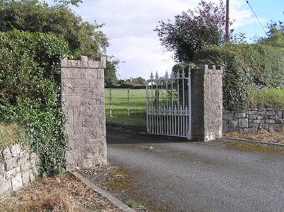 An attractive and well-proportioned house, of late nineteenth-century appearance, that retains its original form and character. The appearance of this house is typical in many ways of the archetypal medium-sized house in the Irish countryside. The hipped natural slate roof with paired central chimneystacks over a symmetrical façade, defined by vertically oriented windows and a central entrance emphasised by its width and shape, is a recurring motif through several centuries. Set in and enhanced by mature grounds, this house is nonetheless visible from the nearby roadway and provides architectural interest to the landscape. It retains much of its fabric, notably timber sash windows and a timber panelled door. The cast- and wrought-iron gates, and the rubble stone boundary walls, to site add considerably to the setting of this attractive composition. The complex of single-storey outbuildings to the north add context. Some of these outbuildings predate the house (Ordnance Survey first edition six-inch map 1838).