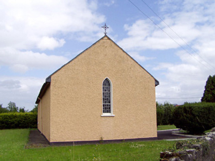 This simple early nineteenth century hall/barn-type chapel, prominently sited on a main road, presents a pleasing façade along the main approach road into Longford Town from the east. The relatively lack of detailing, and the absence of an attached belfry, is indicative of the lack of resources available to the Roman Catholic church in Ireland at the time of construction. The absence of a belfry may also be the result of the restrictions of the Penal Laws, prior to Emancipation in 1829, when the Roman Catholic Church was not permitted to have a bell for worship. The simple pointed arch window openings give this simple building a muted Gothic theme and character. The understated coherent decorative scheme culminates in the later ornate porch with decorative brackets to the double doors, which unifies and emphasises the subdued Gothic theme of the building. The gable ends are adorned with delicate wrought-iron finials, which add artistic interest. The fine figurative stained glass windows to the chancel gable add a further decorative element the interior. These ornate windows were probably added c. 1900 and may be by Mayer of Munich, a prolific firm whose work can be found in many Roman Catholic churches and chapels throughout Ireland. This church was probably originally built as a chapel of ease within the Templemichael Parish.