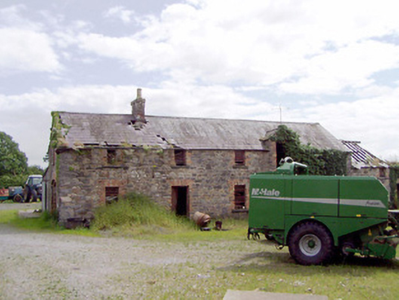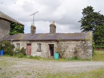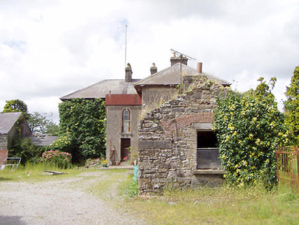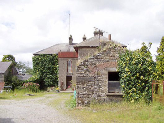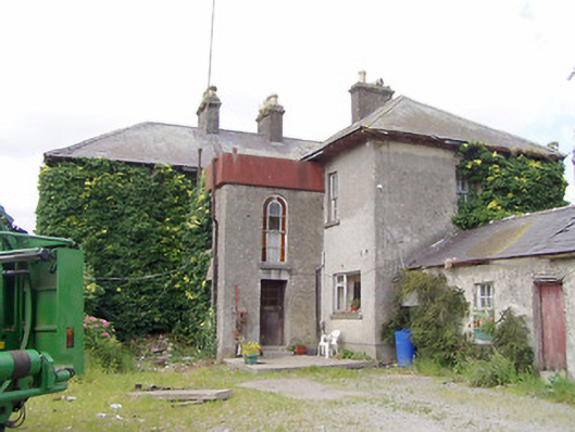 Detached three-bay two-storey house on L-shaped plan, built c. 1845, having two-bay two-storey return and single-bay two-storey flat-roofed extension surmounted by metal water tank to the rear (southeast). Now out of use. Hipped natural slate roofs with overhanging bracketed, cast-iron rainwater goods and rendered chimneystacks with terracotta chimney pots. Roughcast rendered walls over smooth rendered plinth course. Render failing in places exposing rubble stone construction. Square-headed window openings with two-over-two timber sliding sash windows having tooled limestone sills; six-over-six pane timber sash windows to rear elevation. Central segmental-headed door opening to the northwest elevation with rendered surround having dentil details. Glazed overlight over timber panelled door, flanked to either side by moulded timber pilasters. Squared-headed door opening to flat-roofed extension to rear having round-headed window opening over with margin glazing with coloured glass to margin panes. Five-bay single-storey outbuilding attached to the southeast end of house having pitched natural slate roof and render over yellow brick chimneystacks. Roughcast render walls over coursed rubble limestone masonry walls. Square-headed window openings, some with six-over-six timber sliding sash windows, and with limestone sills. Square-headed door openings with timber battened doors. Five-bay two-storey outbuilding to south having pitched natural slate roof with dormer window and render over brick chimneystack. Coursed rubble limestone masonry walls. Square-headed window openings with brick surrounds having timber fittings and limestone sills. Square-headed door opening with brick surrounds and timber battened door. Segmental-headed carriage arch to gable end having red brick voussoirs. Set back from road in extensive grounds. Located to the east of Longford Town.