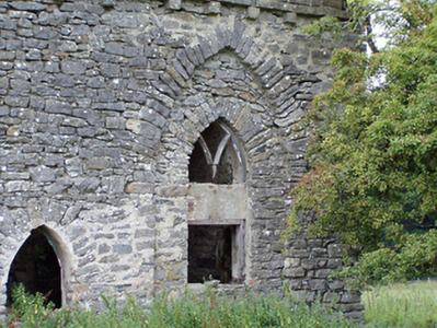 This rustic Gothic style former summerhouse/hermitage forms an integral element of an important group of structures associated with Carrigglas Manor (13401414). Although now derelict, it retains its early form and character, and much of its fabric. This building is a fine example of the nineteenth century penchant for the picturesque, creating an interesting feature at a bend along the former main approach avenue serving Carrigglas Manor. This south-facing building is ideally located to provide shelter, whilst taking full advantage of natural light etc, and it has commanding views over the estate to the south. The slate roof and the presence of a fireplace to the interior indicates that it had a function rather than acting as primarily a ‘eye-catcher’ or romantic ruin, features that are sometimes found on large country estates in Ireland (Belvedere, County Westmeath, for example). The architectural style of the summerhouse house is in keeping with the Tudor-Gothic Revival style of the main house, designed by Daniel Robertson (died c. 1849) for The Lord Chief Justice of Ireland, Thomas Langlois Lefroy, in 1837. However, it is unlikely that Robertson was involved in its design as this structure is lacking his architectural skill. There is a small structure marked here on the 1838 Ordnance Survey first edition six-inch map, and its location at a bend along the approach avenue to the main house hints that it may have formerly been in use as a gate lodge.