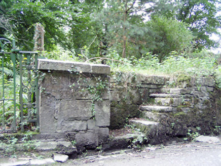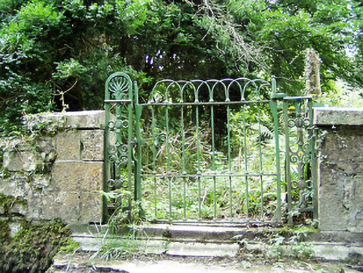 This gateway is located within the grounds of Carrigglas Manor (13401414), and forms part of an extensive group of sites associated with the main house. The metal gate piers are particularly well cast using interesting and intricate cast-iron techniques. The elaborate anthemion and intertwining geometric motifs are particularly well executed. The masonry to the stone piers, and particularly to the moulded step, is quite random and inconsistent and, perhaps, represents stonework taken from the demolition of the former Carrigglas Manor prior to the construction of the present house. The stile to the east provides an alternate means of access to the gate and is quite picturesque. This gateway is an interesting feature and is an integral element of the Carrigglas Manor demesne.