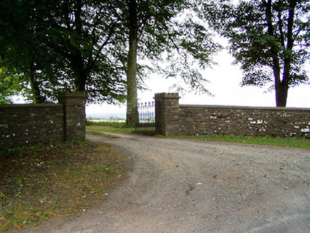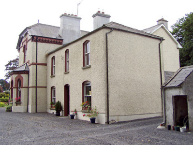Detached two-storey house on complex-plan, built c. 1860 and c. 1890 Comprising three-bay two-storey block, c. 1860, to the north (facing east) with later three-bay two-storey block, c. 1890, on L-shaped plan attached to the south end, facing south, having a projecting gable-fronted bay to the west end, single-bay single-storey porch adjoining to the east side of projecting bay, and with a single-storey canted bay window to the east elevation. Returns and recent extensions to the rear (west). Possibly incorporating the fabric of earlier house to site/rear (map). Hipped (pitched to south end) natural slate roof to section to north having rendered chimneystack and cast-iron rainwater goods; pitched and half-hipped roofs to block to south having rendered chimneystack, ornate bargeboards to gable ends, ornate terracotta bracketed eaves course, and fleur-de-lis finials over gable apexes. Roughcast rendered walls over smooth rendered plinth course. Ornate brick/terracotta eaves courses to porch and to bay window to east. Chamfered string course/impost course to block to south at ground floor level, continuous sill course at first floor level. Segmental-headed window openings to block to north having rendered reveals, two-over-one pane timber sliding sash windows and limestone sills. Margin glazing pattern to ground floor window openings. Pointed segmental-headed window openings to block to south at ground floor level having painted moulded brick surrounds with one-over-one pane timber sliding sash windows and limestone sills. Segmental-headed window openings to block to south at first floor level having painted moulded brick surrounds with moulded brackets to bases, two-over-one pane timber sliding sash windows and limestone sills. Pointed arch detailing over window opening to gable-fronted bay at first floor level (south) having brick surround with inlaid lattice-work decoration/motif. Main doorway to the south face of comprising pointed segmental-headed arch with painted brick surround, square-headed timber panelled door with ornate brackets, and having overlight. Limestone steps to entrance. Segmental-headed doorway to the centre of the block to east. Set back from road in extensive mature grounds to the southeast of Ballinalee with single-storey outbuildings to site. Main entrance gates to the southeast comprising a pair of rubble stone gate piers (on square-plan) and double-leaf wrought- and cast-iron gates. Gateway flanked to either side by sections of rubble stone walling.