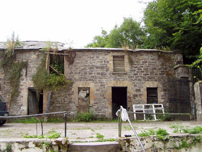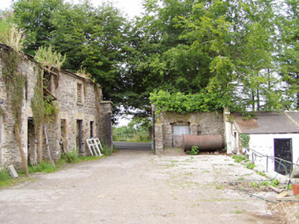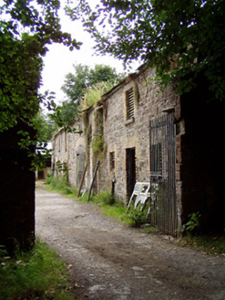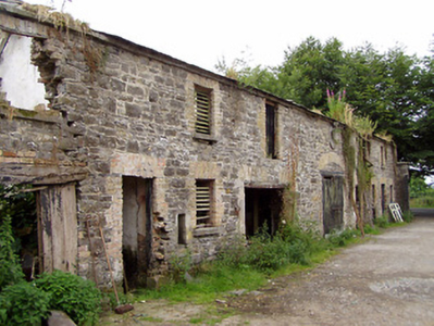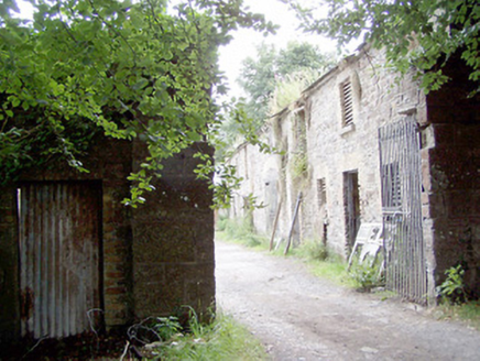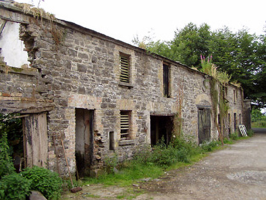 Although now sadly derelict, this substantial outbuilding retains its early form, character and fabric and is a notable example of mid nineteenth-century craftsmanship. The outbuilding retains its original solidly constructed form and structure which is enhanced by decorative motifs such as the brick block-and-start surrounds and the skillfully crafted limestone roundel to the central bay. The simple gate piers and wrought-iron gates to the west add to the setting and complete this composition. It forms a pair with Moatfarrell House adjacent to the northwest, and provides an interesting historical insight into the resources required to run and maintain a medium-sized farm holding in Ireland during the nineteenth century. Moatfarrell House was the residence of a James Fegan in 1881 and 1894 (Slater’s Directory). James Fegan was a Justice of the Peace in 1894.