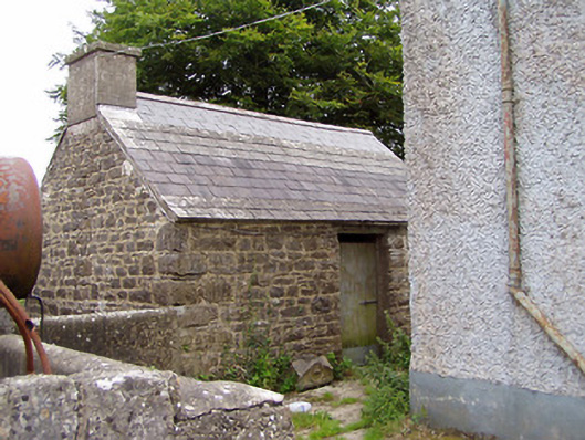 This plain but interesting house retains its early character and much of its salient fabric. The form of this modest house is typical of the farmhouses in the midlands of Ireland. The pitched roof with end chimneystacks, the window openings at attic level to the gable haunches, and the large expanses of blank walling in comparison to the area covered by the small openings (particularly to the rear), all suggest that this building may be quite early, perhaps late-eighteenth century in date. This building is aligned at a right angle to the road alignment, which is a feature of the extended Irish vernacular tradition. The sparse front elevation is enhanced by the central round-headed doorway with simple spoked fanlight, which gives this simple building a subdued formal architectural focus on an otherwise quite vernacular composition. The two-storey rubble limestone outbuilding to the rear, which is probably of early nineteenth-century date (map information) survives in good condition and adds substantially to the setting and context of the house. The setting is further enhanced by the boundary walls to site, and by the simple pedestrian gateway. This unassuming building is an integral element of the built heritage of the local area, adding historic interest to the rural countryside to the northwest of Edgeworthstown.