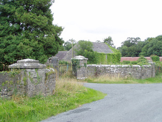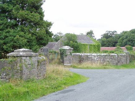 Gateway, built c. 1850, formerly serving Farragh/Farraghroe House, now demolished. Comprising a pair of ashlar limestone piers (on square-plan) having carved stepped capstones, chamfered ashlar limestone plinths and double-leaf cast-iron gates. Stile adjacent to east pier. Gateway flanked to either side by quadrant sections of rubble limestone masonry walls having cut limestone coping and terminated by coursed limestone gate piers (on square-plan) having carved stepped capstones. Rubble stone boundary walls to the east and west. Located to the northwest of the site of Farragh/Farraghroe House, at the start of long approach avenue, and to the southwest of Ballinalee. Attendant gate lodge (13401426) adjacent to the southeast.