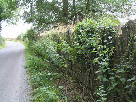 Sections of roughly dressed stone boundary walls, built c. 1800, having crenellated coping over. Formerly associated with house/farmyard at Tully. Aligning road to the southwest of Granard and to the northeast of Edgeworthstown.