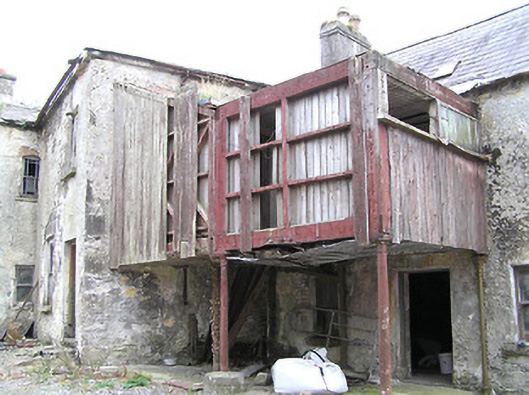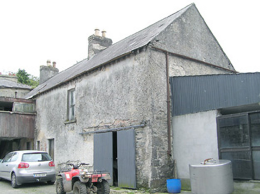 Although now derelict, this house retains its early form and character. It retains much of its early fabric including timber sash windows, natural slate roof and a glazed timber entrance porch. Its detailing suggests that it was constructed during the mid-to-late nineteenth century. The unusual form of this house is due to its construction on uneven terrain. Appearing as a single-storey structure from the front, the single-storey façade shields a large two-storey property with substantial return and outbuildings. The render window surrounds and quoins enhance and emphasise the structure. The house is given context by interesting outbuildings to the rear and the retention of gates and piers to the front. This building is built on the site of a quarry and quarry works, indicated on a 1838 map (Ordnance Survey first edition six-inch map). Sensitively restored this building would be an integral element of the built heritage of the local area, and it adds appeal to the rural landscape to the south of Granard.