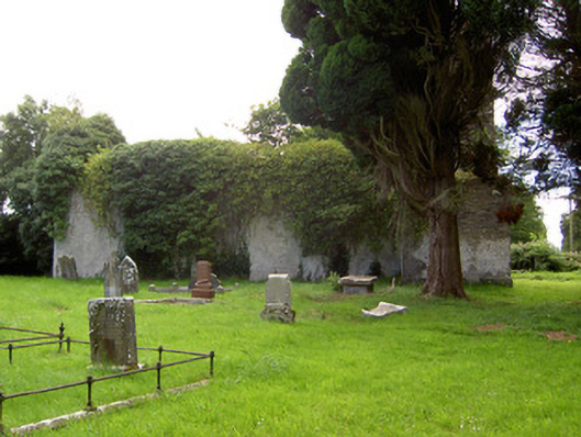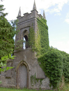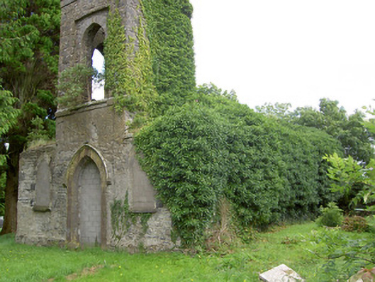 Although now derelict and roofless, this small-scale single-cell Church of Ireland church retains its early character and form. The now-blocked pointed arch openings lend this building a muted Gothic theme. The form of this church conforms to typical Board of First Fruits (1711 - 1833) two/three-bay hall and tower form that can be found in great numbers throughout the Irish countryside. It retains good quality cut and dressed stone detailing, particularly to the tower and to the main doorway. The prominent corner pinnacles to the tower help create a striking silhouette and a strong presence in the rural landscape to the southeast of Ardagh. The side vestibules, flanking the tower, are an interesting feature that are found at a number of Church of Ireland churches in County Longford, including those at Ardagh (13312032) and at St. Munis Church of Ireland church (13402721), at Forgney. It was built at a cost of £989 (Irish Parliamentary Returns 1837), and Lewis (1837) records that this church (at Kilglass), ‘a plain building with a square tower, was erected in 1814, for which the late Board of First Fruits granted a loan of £368. It was altered in 1860 (IAA) by the Ecclesiastical Commissioners (1833 – 1870), and it is possible that the apse was added at this date (map information). The wall monuments to the interior of this church were moved to St. John’s Church of Ireland church (13309011), Edgeworthstown, c. 1990. The collection of stone grave markers to site, some of artistic merit, add to the setting and context of the churchyard. Recessed from the road behind simple but well-built boundary walls, this church and its graveyard, together with the former rectory (13401921) to the southwest, form an interesting group of Church of Ireland structures set in a pleasantly matured landscaped site. The well-crafted wrought-iron gates to the main entrance add additional interest along the roadscape. There was formerly a school house (Ordnance survey six-inch map sheets 1838 and 1913) and a parochial hall (Ordnance survey third edition six-inch map sheets 1913, possibly the earlier school house converted to a new use) to the southeast of the church, now no longer extant.