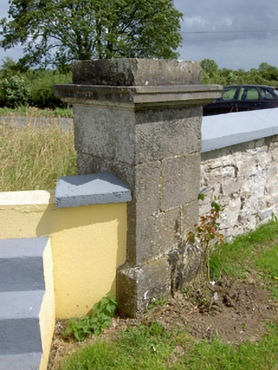 This simple but well-crafted gateway is located at the start of an impressive long straight approach avenue serving Sleehaun House (13401924) to the northeast. The inner gate piers are well-crafted with the moulded ashlar limestone capstones exhibiting particularly fine craftsmanship. The long avenue is depicted on an 1838 map of the area but the present Sleehaun House was not extant at this time, although the present house may contain the fabric of an earlier house to site. The detailing to the inner piers suggests that they are older than Sleehaun House and, perhaps, were moved here from another site or were originally associated with an earlier house to site. This gateway forms a pair of related sites with the house to the northeast and adds interest to the roadscape to the southeast of Ardagh.