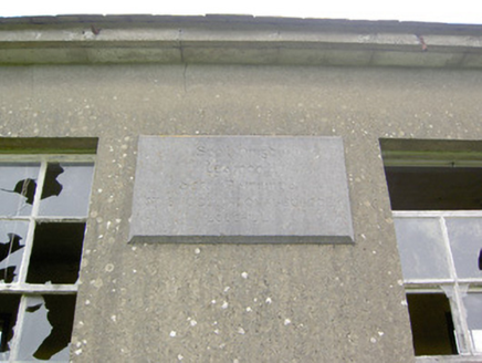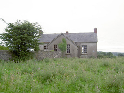Although now derelict, this former school building retains much of its early character and form. Its simple symmetrical form is typical of the standard school buildings designed and built in great numbers by the Office of Public Works for the Board of Education during the first decades of independence, particularly from c. 1925 to c. 1939. This particular school was built in 1937 (OPW). Its form suggests that it was originally built as a two classroom school, possibly with separate classrooms for boys and girls as was common practice at the time of construction. This impression is reinforced by the boundary wall to the rear, which divides the yard into two separate enclosed spaces. The school retains many original features that enhance the façade such as the slate roof, timber sash windows and the carved limestone with incised Gaelic script. This simple school building is of social importance to the local community and represents a modest addition to the built heritage of the local area. The present school replaced and earlier school house at Laughil, which was located a short distance to the east at the far side of the road (Ordnance Survey six-inch maps 1838 and 1913).
