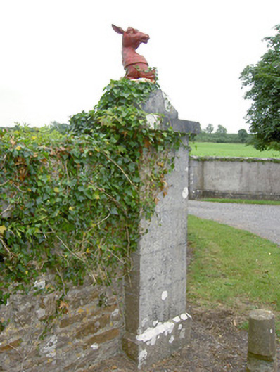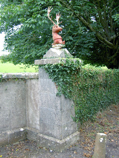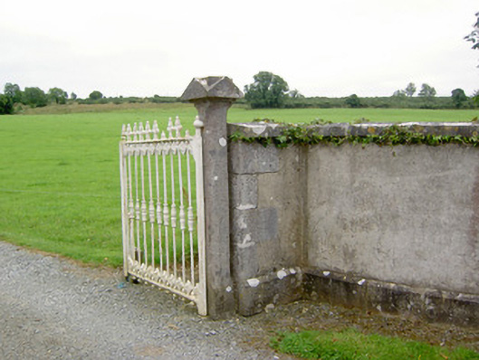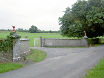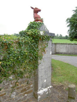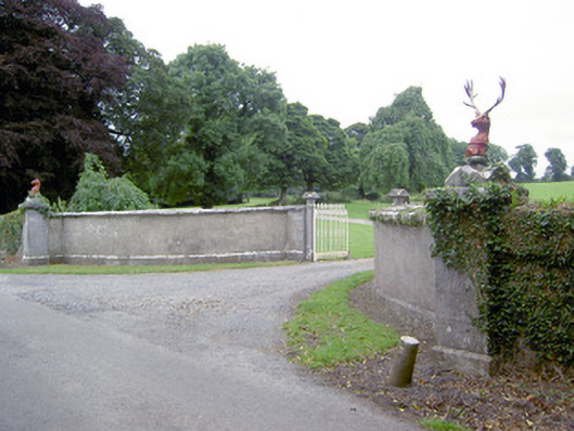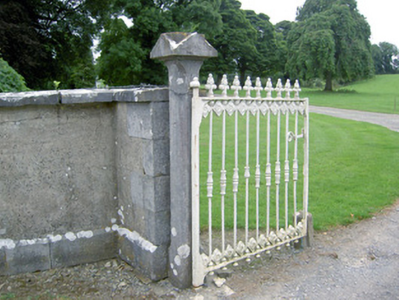 This appealing and imposing gateway forms the main entrance to Castlerea (13401908) to the northeast. It is well-crafted using good quality cut, carved and dressed limestone, while the elaborate cast-iron gates add further aesthetic interest. This gateway is later than the house, and was erected sometime during the second half of the nineteenth century (Ordnance Survey six-inch maps 1838 and 1913). The unusual deer head finials to the outer piers appear to be carved from limestone. It forms a pair of related sites along with the house, and is an integral element of the built heritage of the local area in its own right.