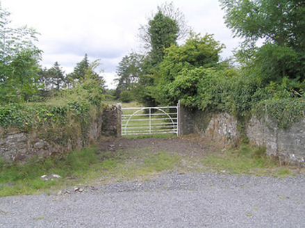 This simple but well-crafted vernacular gateway is an attractive feature in the rural landscape to the southeast/east of Edgeworthstown. Although construction was primarily functional, gateways of this type exhibit visual appeal in the rural countryside. The simple monolithic gate posts are well-carved, and illustrate the attention given to even the most utilitarian of features at the time of production. Of particular note is the simple wrought-iron gate, which is an example of good quality late nineteenth-century/early twentieth century craftsmanship. This functional object is enlivened by the use of an elegantly curved instead of diagonal cross bar. The narrowing of the gaps between the bars nearer the ground provides interest, as well as being practical. Simple gateways of this type are subject to removal on account of modern agricultural requirements/field gate widening etc, making this example an interesting an increasingly rare surviving example of its type. It is a subtle part of the social and architectural heritage of the Edgeworthstown area, adding incident its rural location. Its location adjacent to the main entrance to Clonwhelan House (13402004) suggests that it was connected with this farm. The simple rubble stone boundary walls to either side complete the setting.