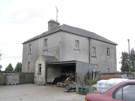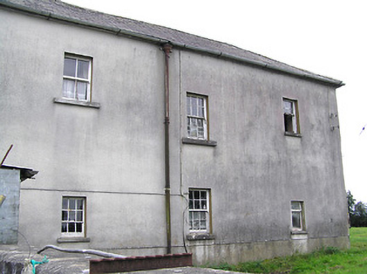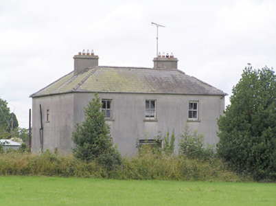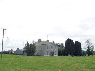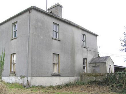 Detached three-bay two-storey house, built c. 1850, having porch with pitched natural slate roof to rear of the northeast elevation. Now out of use. Hipped natural slate roof with two rendered chimneystacks and cast-iron rainwater goods. Cement rendered walls over cement rendered plinth course. Square-headed window openings with stone sills. And having mainly two-over-two pane timber sliding sash windows; some six-over-six pane timber sliding sash windows to rear (northwest) and northeast elevation. Central square-headed door opening to front elevation (southeast) with overlight, sidelights and having timber panelled door Set back from road in own grounds to the southeast of Edgeworthstown. Detached three-bay single-storey outbuilding to rear with pitched natural slate roof with cut stone eaves course and central stone chimneystack, painted rendered rubble stonewalls, square-headed openings with timber fittings and elliptical-arched carriage arch with cut stone voussoirs. Multiple-bay single-storey range of outbuildings to rear with corrugated-metal and corrugated-asbestos roofs, rendered walls and square-headed openings with timber fittings. Main entrance gates to the northeast comprising a pair of chamfered limestone gate posts with ornamental cast-iron gates. Rendered rubble stone boundary walls to either side of gateway (northwest and southeast).