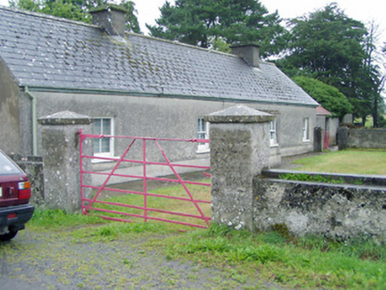 Detached four-bay single-storey vernacular house, built c. 1800, having projecting flat-roofed single-bay porch (added c. 1930) offset close to centre of front elevation (southeast). Single-storey outbuilding attached to northeast gable end. Pitched slate roof with two rendered chimneystacks and having cast-iron rainwater goods. Roughcast-rendered walls over smooth rendered plinth course. Square-headed window openings with two-over-two timber sliding sash windows having tooled limestone sills and cement rendered reveals. Square-headed door opening to southwest face of porch having timber battened door. Multiple-bay single-storey outbuildings to northeast gable end having pitched corrugated-metal roof and roughcast rendered finish over rubble limestone masonry construction. Set slightly back from road at a right-angle to the road alignment. Garden/yard to front (southeast). Rendered boundary walls to road-frontage to the southwest. Gateway to the southwest comprising a pair of rendered gate piers (on square-plan) having wrought-iron flat bar gate. Stile located in boundary wall to the northwest side of gateway. Gateway to the northeast of house, giving access to yard containing outbuilding, comprising a pair of rendered gate piers (on square-plan) having wrought-iron pedestrian gate. Located to the southeast of Lanesborough.