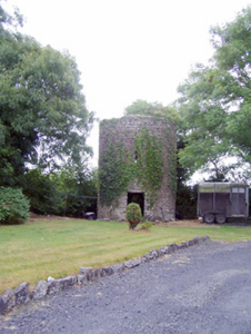 Remains of two-storey windmill (corn) on circular-plan, built c. 1770. Constructed with coursed rubble limestone with remains of lime render over. Remains of cut stone coping over. Remains of two doorways, one to the southeast face and one to the northwest face, having narrow slit window openings/loop hole openings over. Roughly cut limestone lintels over doorways. Remains of staircase to interior, curving around wall from the northwest doorcase. Located in grounds of modern house to the south of Lanesborough. Sited on top of a hill in an elevated position to the east of Lough Ree. Possible remains of earlier windmill (on circular-plan) adjacent to the northeast.