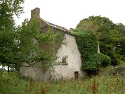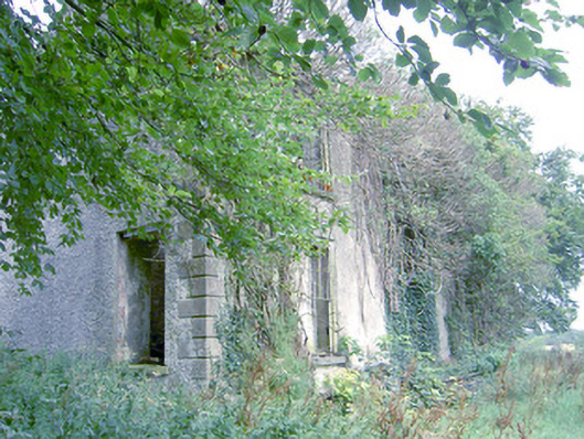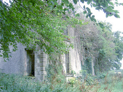 Although now derelict and out of use, this good-quality two-storey house retains its early form and character. It is well-proportioned and the fine cut stone doorcase provides a central focus and elevates the otherwise plain front façade. The dressed limestone quoins to the corners of the front elevation and the flight of moulded cut stone steps serving the entrance also help to elevate this building above many of its contemporaries in the area. This building is an example of the language of classical architecture stripped to its barest fundamental elements, which creates a fine dwelling in a subtle style. This is exhibited through features such as the rigid symmetry to the main elevation, the central round-headed doorway, the diminishing window openings and centrally placed chimneystacks. The sash windows to the front elevation are set against the front façade, which suggests that this building is quite early in date. The largely blank rear elevation with small window openings would also suggest a relatively early date. The fine ashlar limestone gate piers to the southwest add considerably to the setting. The simple wrought-iron gates and rubble stone boundary walls complete this appealing composition. Sensitively restored, this would be an important element of the built heritage of County Longford. This house was described as ‘the property of Lady Rosse, held by deed for ever’, and ‘has offices and an orchard attached to it’, c. 1835 (O’Donovan Letters).