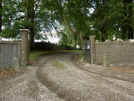 This interesting, robust and substantial house retains much of its early form and character. The recent loss of the original fittings to the openings fails to detract substantially from its visual expression. The narrow plan with central return to rear (possibly a stair return), and the pitched roof with end chimneystacks suggest that this building is of considerable antiquity, perhaps dating to the first half of the eighteenth century. The unusual proportions to the front elevation are primarily due to the large space between the top of the first floor window openings and the eaves. This suggests that this building formerly had a steeper pitched roof that was subsequently changed to the present profile, or that it possibly originally had a second floor. According to local information, this building was thatched until the late-nineteenth century when the roof was rebuilt. However, it would be highly unusual to have at thatched roof on a building of this type and scale. The well-crafted gate posts to the south add considerably to the setting of this notable composition, which is an integral element of the built heritage of the local area. Richmount was the home of the Richardson family from the middle of the eighteenth century. It was the residence of James Richardson c. 1780 (died 1785/6). A Mr. Achmuty/Auchmuty Richardson of Richmount served as high sheriff of County Longford in 1811. The Richardson family also owned Richfort House, now demolished (gateway remains 13401904) to the northwest of Ardagh during the eighteenth century up until the mid-nineteenth century. Richmount later passed into the ownership Moffet family (probably through marriage with Richardson family) of nearby Park Place (house demolished). It was later the residence of a Dr. Huggins M.D. (died 1847), a relative of the Moffet family, who apparently served as an army doctor at the Battle of Waterloo in 1815. It was the residence of a Revd. Arthur Irwin Huggins c. 1860 (Griffiths Valuation) and later of a Revd. Arthur William Irwin, who inherited the property through the Moffet family.