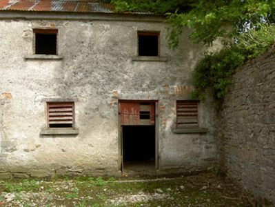 Although now mainly disused, these substantial two-storey outbuildings retain much of their early form and character. They are robustly built using squared limestone rubble and survive in relatively good condition. They also retain much of their early fabric, particularly the timber fittings to the openings. The simple forms and construction is indicative of their original functional use. They were built to serve Castlewilder House (13402321) and their scale provides an interesting historical insight into the extensive resources required to run and maintain a large landholding in Ireland during the eighteenth and nineteenth centuries. The outbuildings with the cut stone eaves courses probably date to the late eighteenth century, while the brick eaves course and detailing (including the lattice window) to the outbuilding to the northwest end of the northwest ranges suggests that it is slightly later, probably dating to the first decades of the nineteenth century (Ordnance Survey first edition six-inch map 1838. The exterior flight of cut stone steps to the northeast range is an interesting feature, allowing direct access to the upper loft to this range. The cast-iron well-head or water pump is another interesting feature that adds context to the setting. This cast-iron feature was cast at Joseph Evans and Sons Foundry, Wolverhampton, a firm that specialised in water pumps of all types and hydraulic rams (indeed they were possibly the largest manufacturers of pumps in the world c. 1900), and probably dates to c. 1880 - 1900. The simple rubble stone boundary walls to site complete this composition, which is an integral element of the built heritage of the local area.