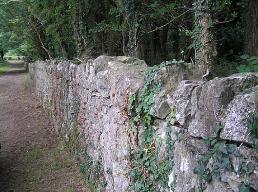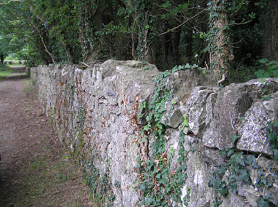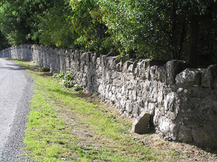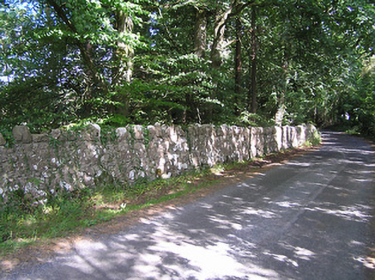 These simple but robustly constructed rubble limestone boundary walls make a positive contribution to the landscape at Derrydarragh. Their construction in local rubble/field stone is typical of traditional walling techniques. The boundaries/roads are marked on an 1838 map of the area (Ordnance Survey first edition six-inch map). Set on quiet roads and by the picturesque shore of Lough Ree, encircling a mature wooded landscape, they are enhanced by their attractive surroundings. The simple vernacular gateway to the south end of the wall, which probably dates to the late-nineteenth century and may have been erected at the same time Summersit (13402501) was constructed, adds considerably to the setting and is significant in its own right. This wall and the gateways now form part of a group of sites associated with Summersit, and are an integral element of the built heritage of the area.