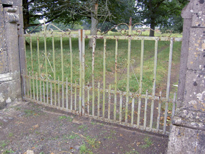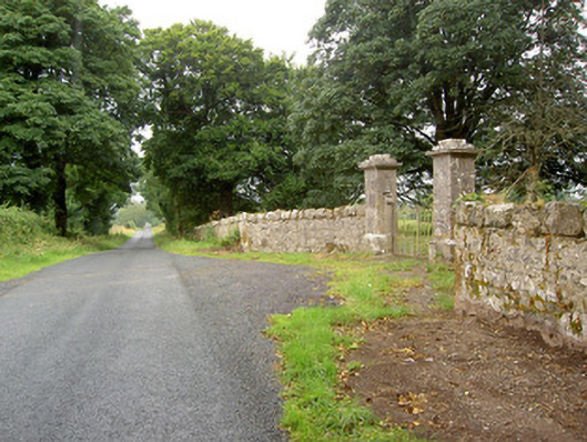 These robust but elegant gate piers form part of an important collection of structures associated with Creevaghmore House (13402719). They survive in good condition and retain their early form and character. The craftsmanship and quality of the stonework to the piers is of the highest standard and is of high artistic merit. The style of the gate piers suggests that they date to the mid-eighteenth century but the wrought-iron gates are relatively modern additions. The form and carved detailing to the piers is very similar to that found at a Clooncallow House (13402717), and it is possible that the gates at Clooncallow House formerly served another entrance to Creevaghmore House (possibly originally to the northeast of this gateway). Although now no longer in active use, this gateway forms an appropriately grand entrance to a building of the importance of Creevaghmore, and is an important element of the built heritage of the local area in its own right. The simple rubble stone boundary walls to either side add considerably to the historic setting and context. A gate lodge formerly stood to the south side of the gateway, inside the estate, but is now demolished (Ordnance Survey six-inch maps 1838 and 1914). It is probable that the original main entrance to the estate was a short distance to the northeast of this site where the boundary wall steps in (Ordnance Survey maps), and that this gateway was built later. A straight approach avenue from this probable former gateway would approach the front of the main house, a characteristic feature of gateways found at early eighteenth-century estates in Ireland.