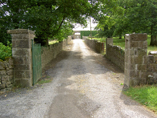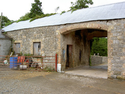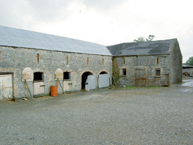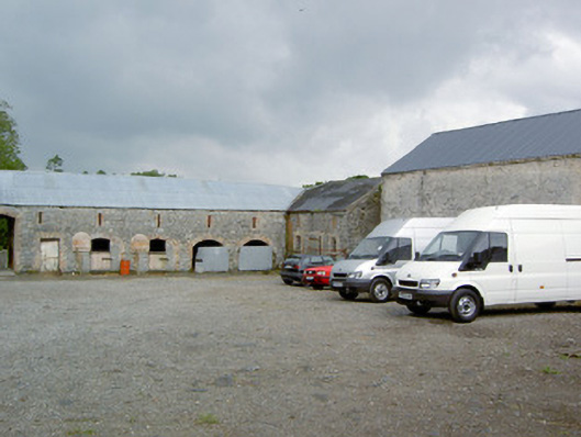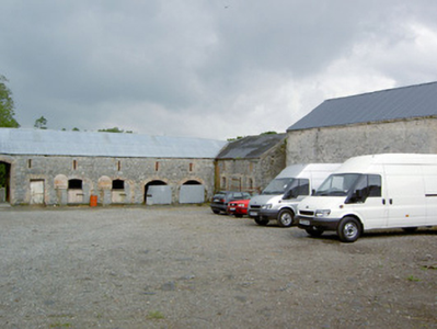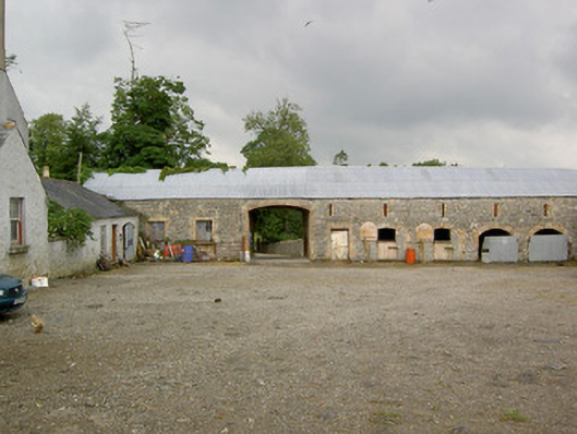 This substantial complex of outbuildings adds considerably to the historic setting and context of Creevaghmore House (13402719). They probably originally date to the middle of the eighteenth century but the brick surrounds to the openings suggests that they were extensively altered during the nineteenth century. These outbuildings survive in good condition and retain their early form and character. The scale of these structures provides an interesting historical insight into the extensive resources required to run and maintain a middle-sized country estate in Ireland during the eighteenth and nineteenth centuries. Of particular note is the survival of the cast-iron grills and cast-iron horse head motif/finials to the stables, which are interesting and unusual features that add an element of decorative interest and indicate the attention afforded to even the most mundane of features on country estates at the time of the construction. These cast-iron features are probably later additions, perhaps added during the middle of the nineteenth century. This complex of outbuilding forms part of an interesting group of related sites at Creevaghmore along with main house (13402719) and the gateway (13402718) to the northwest, which together form an attractive grouping in the rural landscape to the southwest of Ballymahon. The rubble stone walls, the remains of the walled garden to the southwest, the cut limestone gate posts and the wrought-iron gates to site add to the setting and complete this composition.