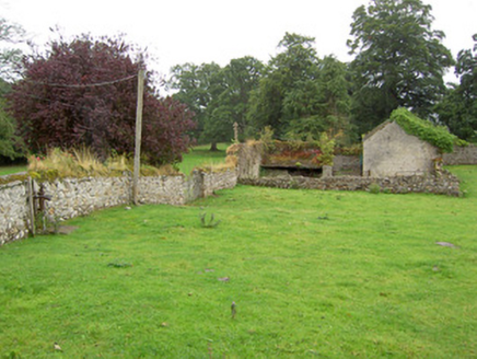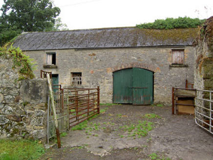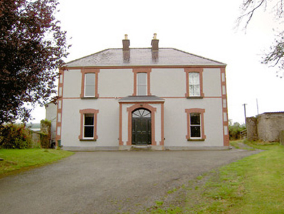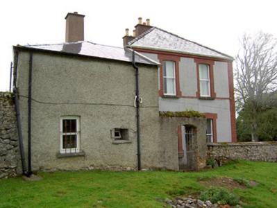 Detached three-bay two-storey house, built c. 1880, having single-bay single-storey entrance porch to the centre of the front elevation (north) and incorporating multiple-bay two-storey house/outbuilding, built c. 1800, to rear (south). Hipped natural slate roof with a central pair of rendered chimneystacks having terracotta pots, red brick eaves course and with cast-iron rainwater goods. Hipped natural slate roof to porch having red brick eaves course. Pitched and hipped artificial slate roof to section at rear. Smooth rendered ruled-and-lined walls over dressed limestone plinth course with brick strip quoins to the corners of the front elevation (north) of main block having recessed smooth rendered rectangular panels. Flush brick string course at first floor sill level. Moulded smooth rendered detailing to porch with flush brick quoins to the corners. Segmental-headed window openings with tooled cut limestone sills, painted brick surrounds and replacement sliding sash windows. Square-headed opening to rear elevation of block to rear having six-over-six pane timber sliding sash window. Segmental-headed door opening to front face of porch (north) having painted brick surrounds with moulded rendered detailing to exterior, timber panelled door flanked by timber panels, and having spoked fanlight over. Timber window shutters visible to interior. Set back from road in extensive mature grounds to the southeast of Ballymahon. Detached single-storey outbuildings to east of house having roughcast rendered random rubble limestone construction and having corrugated-metal roofs, pitched to one outbuilding and flat to the other. Detached multiple-bay two-storey outbuilding to south of house having roughcast rendered finish over random rubble limestone construction; pitched corrugated-(asbestos cement?) roof with raised rendered verges to gable ends; square-headed window openings with brick surrounds and remains of timber sash windows to ground floor and timber battened loading bays at first floor level; square-headed door opening with brick surround and timber battened door; and segmental-headed carriage arch with brick voussoirs and corrugated-metal double-doors. Ruinous structure to the south of house having rubble limestone walls and blocked square-headed and round-headed openings with brick surrounds and voussoirs. Rubble limestone boundary walls to site, that to southeast of house having integral square-headed pedestrian entrance. Section of rendered brick boundary wall to the east of house having integral segmental-headed pedestrian entrance with wrought-iron gate. Walled garden on rectangular-plan to west/northwest of site having random rubble limestone boundary walls having gateway to southeast having rubble stone gate piers and a pair of hooped wrought-iron gates, and integral pedestrian entrance to west side having wrought-iron gate. Cast-iron water pump to east side of walled garden, abutting boundary wall. Main entrance gate to the north of house having a pair of rebuilt rubble stone gate piers (on square-plan) having a pair of cast-iron gates. Long approach avenue to house from the north.