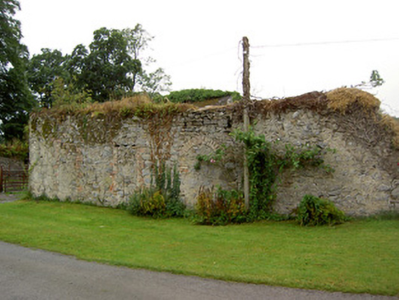 This appealing and well-proportioned house, of mid-to-late nineteenth-century appearance, retains its early character and form. The appearance of the front elevation of this house is enlivened by the extensive brick detailing, which contrasts attractively with the smooth rendered ruled-and-lined walls and the simple moulded render detail to the porch and quoins. The dressed limestone plinth course adds further textural and tonal variation to the front elevation. Although the fittings to the window openings have been changed in recent years, they are in keeping with the architectural character of the house and fail to detract substantially from its visual expression. The present house appears to have replaced an earlier house or houses to site. The block attached to the rear of the main block appears to be an earlier dwelling to site, while the now ruinous rubble stone structure (with blocked square- and round-headed openings having brick surrounds) may also be a former dwelling to site. An 1838 map of the site (Ordnance Survey first edition six-inch map) would suggest that this building with the blocked openings may have been the main dwelling to site at this time. The simple outbuildings to site, which predate the present main house and were probably built c. 1800, the walled garden, boundary walls and wrought-iron gates to site add considerably to the setting on context to this building and site. The gate piers to the north of site are probably of recent construction but the cast-iron gates are attractive examples of late nineteenth century mass-produced ironwork. The present gateway replaced an earlier gateway to site, which was located to the west of the house. This house and ancillary structures/features is an integral element of the built heritage of the local area, and is an appealing group in the rural landscape to the south of Ballymahon. Rathmore was the residence of a William Shore c. 1860, and the lands appear to have been leased from the King-Harman family of Newcastle House (Griffith’s Valuation). A Robert Shore was resident at Rathmore in 1741 (will), which suggests that the Shore family, and the earlier houses to site, sate back to the mid-eighteenth century at the latest. It remained in the ownership of the Shore family until the end of the nineteenth-century (parts of estate may have been sold c. 1860), and its was in the residence of a Mr. C. Shore and/or a John Fegan in 1894 (Slater’s Directory).