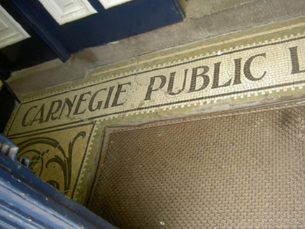 This handsome building is a fine example of a Carnegie Library. The design by a young architect Finian (Finnie) Tallan was selected by competition. This is his only recorded major commission. A number of these libraries were built in the late-nineteenth, early-twentieth century and were an important social development. This example, with its attractive use of red brick and contrasting stone dressings, makes a striking feature on the predominantly rendered streetscape. The windows are particularly fine, as the limestone mullions and transoms are unique within Fair Street. The intricately carved keystone and plaque above the entrance door complete the structure adding artistic appeal.