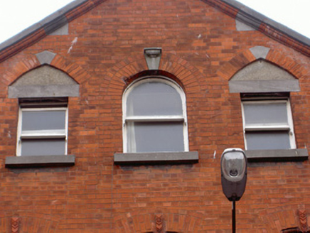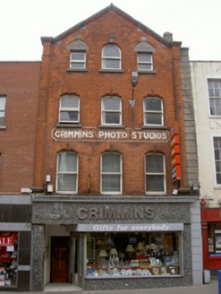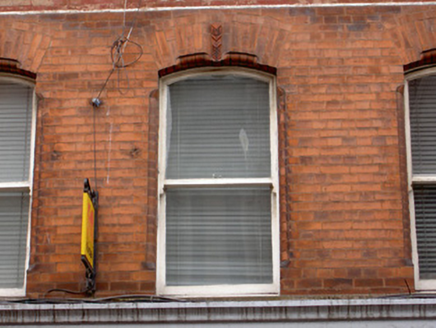 Attached three-bay four-storey gable-fronted house and shop, built c. 1910. Roof hidden by gable, tooled limestone verge coping, roll-moulded red brick eaves course, smooth rendered corbelled chimneystack. Red brick walling laid in English bond, red brick pilasters to sides with tooled limestone bases and capitals. Segmental-headed window openings, roll-moulded reveals and soffits, terracotta keystones, tooled limestone sills, painted timber one-over-one sliding sash windows, central round-headed window to third floor, tooled limestone keystone, flanked by square-headed windows, tooled limestone lintels, blind pointed arch overlights. Reconstituted stone shopfront, surmounted by moulded cornice, glazed display window, recessed entrance to south, glazed aluminium door to shop, painted timber panelled door, to upper floors, tiled entrance floor. Street fronted.