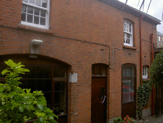 A coach house-cum-stable outbuilding erected to designs by Patrick Joseph Dodd (1845-1892) making a pleasing visual statement in Bachelors Lane (cf. 13622017).