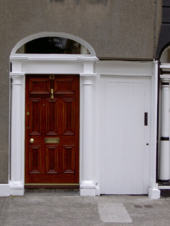 Terraced two-bay two-storey house, built c. 1820. Pitched artificial slate roof, clay ridge tiles, smooth rendered chimneystack, moulded cast-iron gutter on corbelled eaves, circular cast-iron downpipe. Smooth rendered walling. Square-headed window openings, painted reveals, painted stone sills, uPVC windows, cast-iron window guard to ground floor. Segmental-headed door opening, painted timber surround comprising engaged Doric columns supporting plain frieze, cornice and plain glazed fanlight, painted timber door with eight flat panels; square-headed door opening giving access to rear of site to south of west elevation, painted timber vertically sheeted door. House fronts directly onto street.