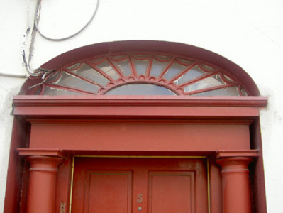 This modest house is enhanced by the striking doorcase, whose simple design is well-executed and in keeping with the unassuming character of the terrace. The subtle decoration provided by the corbels at eaves level further elevates the design. The ornamental fanlight is a particularly noteworthy feature.