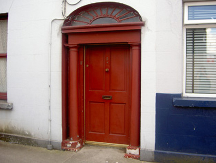 Terraced two-bay two-storey house, built c. 1820. Return to south. Pitched slate roof, clay ridge tiles, smooth rendered corbelled chimneystack, overhanging eaves supported on moulded corbels, moulded cast-iron gutters. Painted smooth rendered ruled-and-lined walling, stone plinth. Square-headed window openings, painted sills, painted timber casement windows. Segmental-headed door opening, engaged Doric columns on stone plinths supporting plain frieze and projecting cornice set in recess, painted timber four-panel door, spider web fanlight. Street fronted.