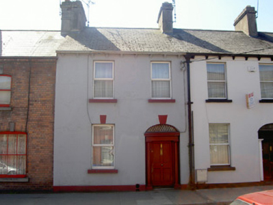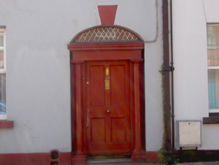 Terraced two-bay two-storey house, built c. 1820. Return to south. Pitched slate roof, clay ridge tiles, smooth rendered corbelled chimneystack, overhanging eaves supported on moulded corbels, moulded cast-iron gutters. Painted smooth rendered ruled-and-lined walling, painted stone plinth with drain outlet. Square-headed window openings, painted sills, uPVC windows. Segmental-headed door opening, engaged Doric columns on stone plinths supporting plain frieze and projecting cornice set in recess, painted timber four-panel door, plain-glazed fanlight. Street fronted.