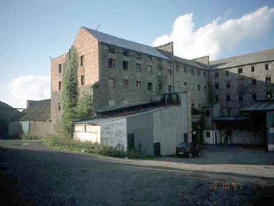 Detached eleven-bay six-storey water mill, built 1783, with remains of cast-iron water wheel. Five-bay five-storey and six-bay six-storey extensions to south with ridge-high firewalls. Various mid-twentieth-century single-storey extensions. Double-pitched roof, natural slates with double span roof to extensions, monopitched and double-pitched corrugated iron roofs to extensions, cross wall fire breaks. Coursed rubble, inscribed round stone plaque - 'Connolly Clarke, Fay 1783' to southernmost extension. No cills, brick dressing to segmental-headed window opes, remains of sash windows and timber grills, T & G deal door, oval metal plaque above door ope depicting ploughman and plough, T & G deal shutters.